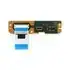 Use a pair of tweezers to pull the blue pull tab directly away from the connector to disconnect the power and eject button ribbon cable.