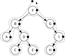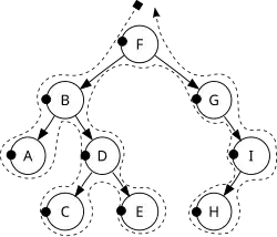 When doing this by hand, you can just draw a line to the left of the nodes and drawing a line around the nodes as shown in the image to the right. This method works for each traversal, it just depends where you draw the lines.