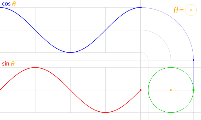 Sine and cosine correspond to the coordinates of a point on the unit circle