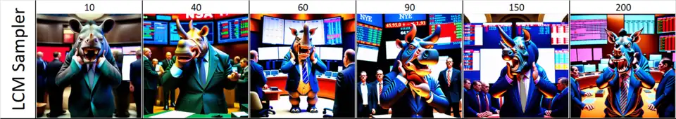 - LCM aims to generate high-quality images in significantly fewer steps than traditional diffusion models by leveraging a novel consistency-based sampling approach.