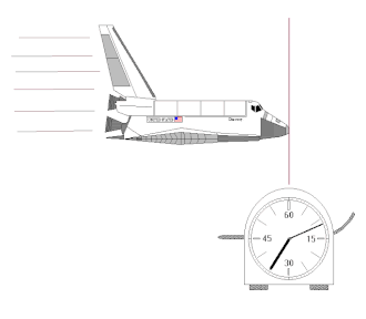 But what does he think of my measurements and I of his? Lets concentrate on the latter. I watch as he approaches my ship and observe him start his clock at the instant he passes the front of my ship and stop his clock at the instant he passes the back. His clock stops at 0.25 µs. So far so good.