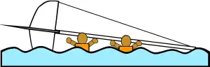 Capsizing usually results from heeling too far or an accidental jibe. If you feel your in real danger of tipping over, luff the main sail at once (which is to let out the main sheet to allow the air to flow out of the sail). If your boat does go over on its side, stay with it, never swim away. You must do several things quickly.