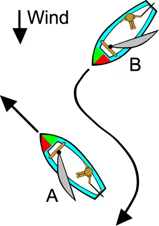 In the illustration below, boat "B" is the windward boat and must turn to avoid boat "A" which is leeward.
