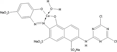 Chromophores of dye molecules often contain unsaturated groups such as >C=O and -N=N-, which are part of a conjugated bonding system, usually involving aromatic rings. Chrysoidine, a basic dye, is shown below: