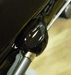 - Cable end terminals (anchors): The steel cables have welded end pieces (see image) that are shaped to fit into slots in shifters or brake levers and because cables are not interchangeable as to their purpose, there are three main types of inner-cable sold. A brake cable has either a barrel-shaped end, for bikes without drop-handlebars, or a pear-shaped end for the racing types with drop-handlebars. Cables for shifters have a button-shaped end. The free end of a cable is usually welded so that the wires cannot fray while the cable is being threaded through its housings. Some cables for brakes have a barrel at one end and a pear-termination at the other so that the user can discard the one that is not needed. These latter types are referred to as universal though the term is also used to describe some products that contain a complete brake or shifting kit that is long enough to fit most bikes.