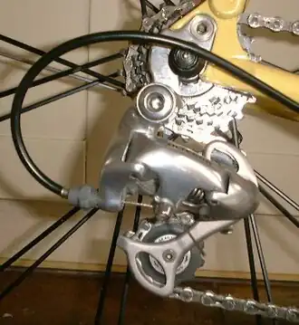 In the case of a run to a derailleur, the housing abuts with the derailleur's static part and the cable runs on to rotate the moving parts of the shifting gear. A similar argument to the one for brakes applies in that it is the difference between the effective housing length and the inner cable's length that sets the exact degree of operation, (rotation in this case).
