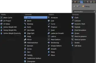 in the Object Properties window. Click the “Add Modifier” button, and in the menu that pops up, select “Array”. You should see a second copy of the paling appear next to the first.