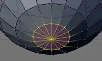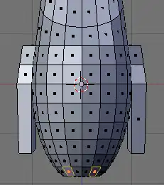 We're going to cut the penguin's lower end, for it to stand up! Select the bottom vertices (bottom vertex and the first ring above it) as shown in the picture. There are many ways, this is left as an exercise.