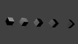 The cube will immediately become two cubes, but so close together that they look like a single cuboid. This is because the default settings for the Array modifier are to use a Relative offset of (X, Y, Z) = (1.0, 0.0, 0.0). Change these offsets to (1.5, 1.5, 1.5), so the copies are more widely separated at a more interesting angle, and increase the repetition count to 5.