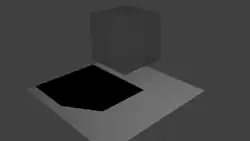 Light should be able to pass through the cube and illuminate the part of the plane directly behind; so why is the shadow completely black?