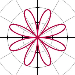 A polar rose is a famous mathematical curve that looks like a petaled flower, and that can be expressed as a simple polar equation,