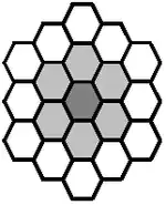 Is a simple square (usually 3×3 cells) with the output cell in the center. Usually cells in the neighborhood are described by directions on the compass sometimes the central cell is omitted.