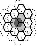 Formally the small (3-cell) unaligned hexagonal neighborhood represented on a rectangular lattice is the set of neighbors
