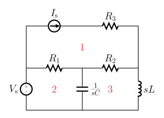 Mesh analysis works by arbitrarily assigning mesh currents in the non-trivial loops/meshes. Figure 1 labels the essential meshes with one, two, and three.