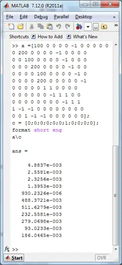 - The single 1 in the = column is enough to trigger all the currents and voltages in the solution. The one comes from a source. Multiple numbers in this column probably mean there are multiple sources.