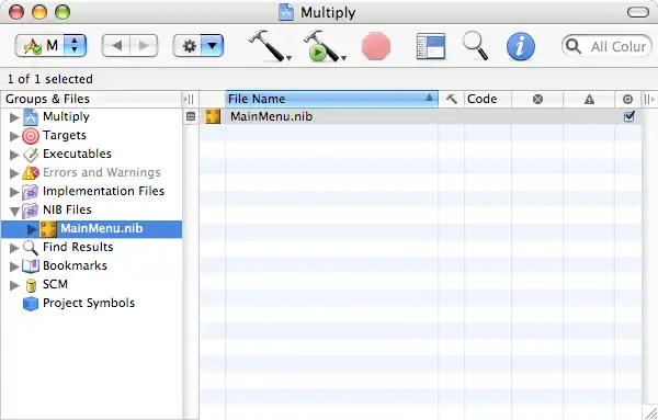 With the interface now completed you can write the code for the MultiplyController class. Make sure you have Xcode selected and click "Other Sources". The sources for your application will now be displayed on the right. Double click on "MultiplyController.m" to open it for editing.