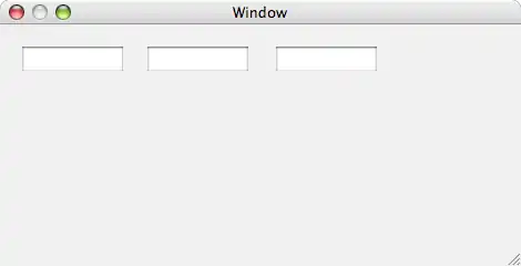 Now your application needs a way to activate the multiplication. Choose the "Cocoa-Controls" tab of the interface elements palette and drag a button into your applications window. place it below the right textfield. Double click the button and change its text to read "Calculate". Since this is the last item we will be adding to our interface you might like to also resize the window so that it doesn't have so much extra space. Your window should now look something like the following.