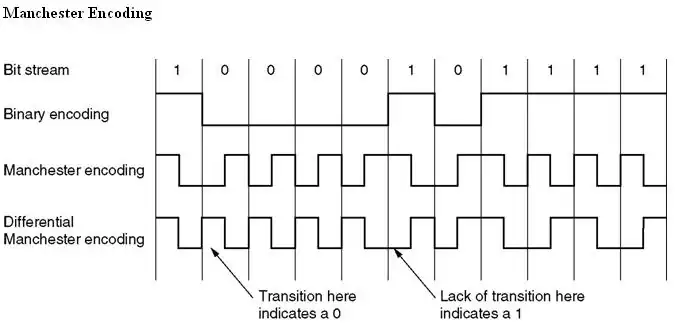 Encoding is mean transform the information in to the signals. You can send your data by converting them in to the signals. If you are sending a binary bit pattern 10000000, then there may be chance at the receiver side, it will consider as 00001000 or 00100000. So we have to find out some exact method by which receiver will determine the start, end or middle of whicheach bit withoutrefernce to an external clock. Two methods are there(1)Manchester Encoding (2)Differential Manchester Encoding.