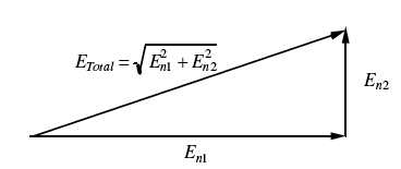 From this we observe that random noise resistance can be added directly, but random noise voltages add vectorially: