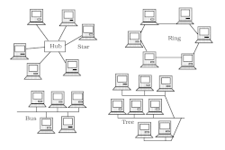 LANs can be configured in three basic ways, namely: as a ring, star, or bus. Another arrangement known as a tree topology is really a variation of the bus. Cable TV is an example of a tree network employing frequency division multiplexing.