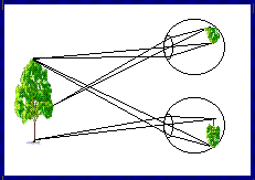 The study of consciousness may seem to be esoteric or outside of the main stream but it includes some very real problems in science and philosophy. The most obvious problem is how we can see anything at all. Many people with a smattering of geometry tend to believe that they have a 'point eye' that sees the world, and this idea is known as perceptual "Naive Realism". Physical considerations show that this idea is highly contentious; we have two eyes with different images in each, normally the only images in the world are created by optical instruments such as the eye, and the photons that carry light to the observer cannot and do not all converge at a single point. Some of the discrepancies between the physical reality and our experience are shown in the illustrations.