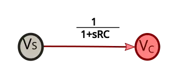 Branch equations for the capacitor and resistor. The equations will be developed as transfer functions using Laplace transforms.