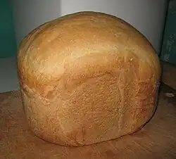 A bread machine or breadmaker is a home appliance for baking bread. It handles the process from ingredients to a finished loaf, automatically. The machine consists of a bread pan with a paddle mounted in the centre, in a special purpose oven, with a control panel.