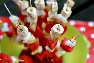 Fruit skewer, also known as fruit kebab is a typical Nigerian snack prepared from varieties of fruit.