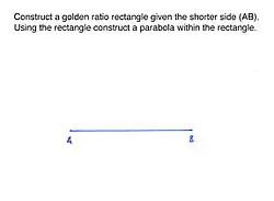 1. Create a rectangle ABCD. Find the midpoints of each line and connect the points to divide the rectangle into quadrants. Divide AG and GO into equal number of parts using the division method.