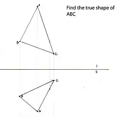 Finding the true length is a fundamental process in descriptive geometry that advances the problem-solving to the next steps to reach the solution. To find the true length of a line you must take a view parallel to the line; in other words, if a line is a parallel to the folding line in one view, it is shown in true length in the adjacent view. If a line is parallel to the folding line in both adjacent views, as for example in both the top and front views, then it is shown in true length in both of those views, and in such cases no additional work must be done if the only goal is to find the true length of the line.