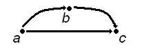 In the arrow diagram, every arrow between two values a and b, and b and c, has an arrow going straight from a to c.
