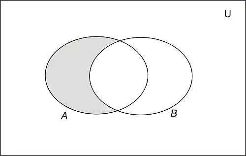 - U = {natural numbers}; A = {2, 4, 6, 8, 10}; B = {1, 3, 6, 7, 8}