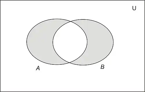 - Make six copies of the Venn diagram shown alongside, and then shade the areas represented by: