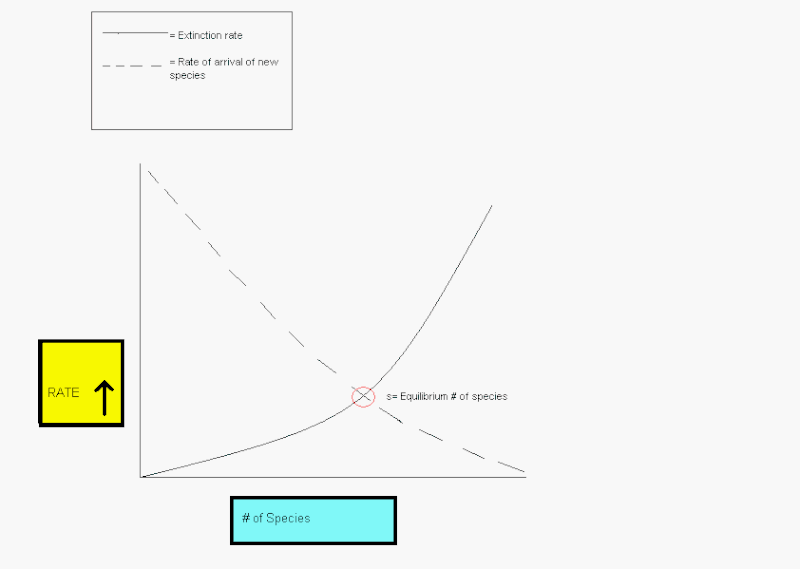The equilibrium value (equilibrium diversity value) of an island depends on the area of the island- the larger the area the more resources there are on the island. Smaller islands support smaller populations, and smaller populations are more likely to become extinct. Here is where the Target Effect comes in play. The Target Effect says that larger islands have higher immigration rates because they are a bigger target.