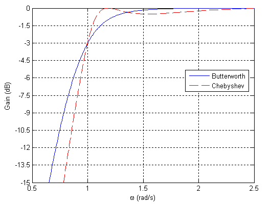 Figure 6: Chebyshev vs. Butterworth High-Pass Response.