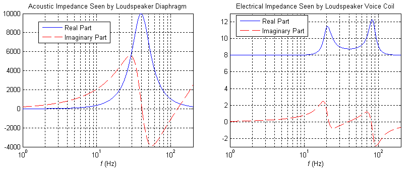 Figure 3. Impedances seen by the loudspeaker diaphragm and voice coil.