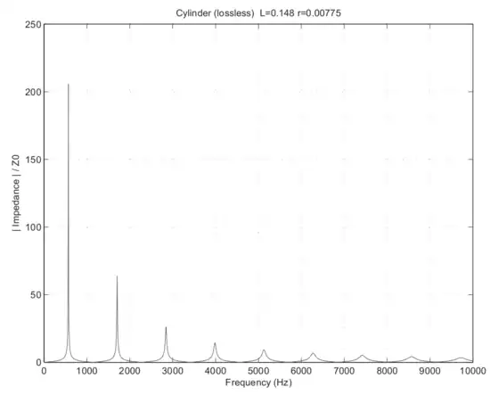 It is not easy to measure the radiation impedance directly. However, we can obtain the radiation impedance of a pipe from its input impedance by:[7] , where is the length of the pipe and is the radius.