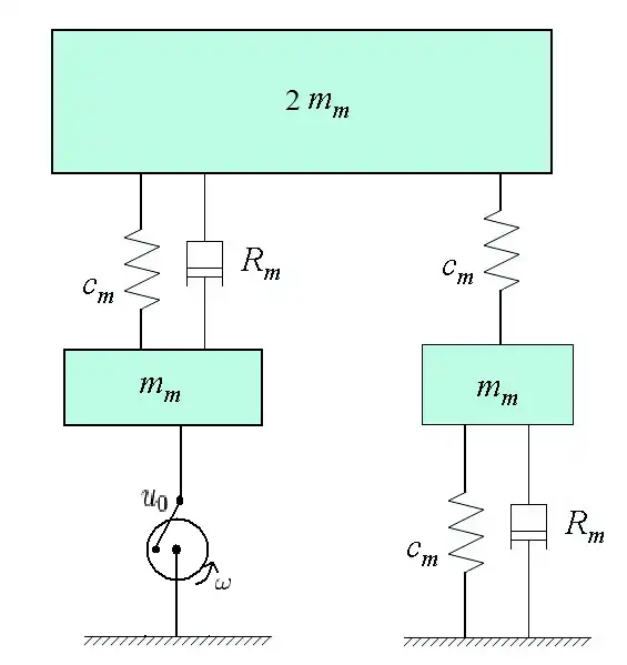 GIVEN: Two springs of stiffness, , and two bodies of mass,