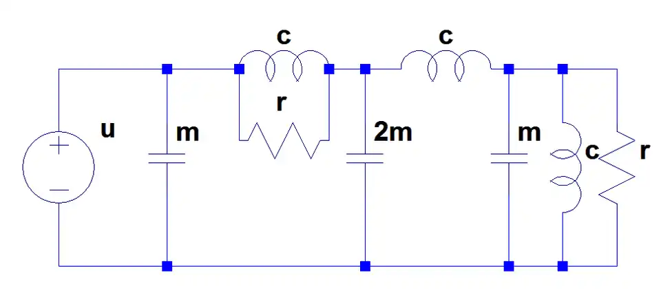 In practice, the stiffness of the spring , also called the spring constant, is usually expressed as , or the mechanical compliance of the spring. Therefore, the spring is very stiff if is large is small. Similarly, the spring is very loose or “bouncy” if is small is large. Noting that force and velocity are analogous to voltage and current, respectively, in electrical systems, it turns out that the characteristics of a spring are analogous to the characteristics of a capacitor in relation to, and, so we can model the “reactiveness” of a spring similar to the reactance of a capacitor if we let as shown in Fig. 2 below.