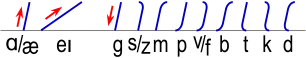 The first two symbols are written upward, and roughly correspond to character “a”. The first symbol is used for two different sounds: