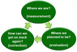 Evaluation is based on monitoring but adds a "judgment". Is what happening supposed to happen? What we are doing is it the right thing? What we have done, was it done right? Do the actions follow the plan? Are the employees doing their tasks as they were expected to do? Are the tasks managers working efficiently? Is the team working efficaciously? Was the plan well conceived? Are there new factors taking place that require modifications in the plan? Are the project deliverable leading to the expected project outputs? Are the project outputs leading to the expected project objectives? What are the outcomes and the impacts of the project? Is the project contributing as intended to the wider programme to which it was a component? Are we learning from the experiences?