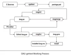 Important GNU gettext tools will be discussed by describing the summarized steps of translation from scratch (See Figure 3):