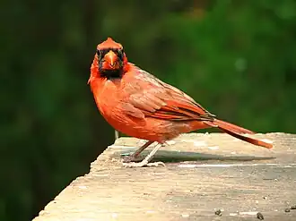| These are robust, seed-eating birds, with strong bills. They are typically associated with open woodland. The sexes usually have distinctive appearances; the family is named for the red plumage (like that of a Catholic cardinal's vestments) of males of the type species, the Northern Cardinal. | |