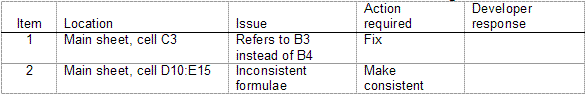 This is OK for most small spreadsheets, but it does confuse the role of builder and checker and you should avoid doing this for important or complex models. If you use a Review sheet, you should not make any changes to the original – the builder should do this after looking at your comments, and then give the model back to you for rechecking. Your job is to check, not to build.