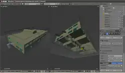 A three-floors university building is modeled. A 1500 kW fast fire is positioned at ground floor near the main entrance. The calculation domain is divided into three MESHs for parallel calculation. Round geometries are exported to FDS notation.