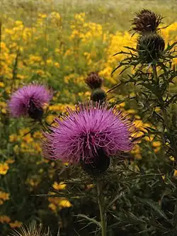 | The Cardueae (syn. Cynareae) is a mostly non-native tribe of Asteraceae. It contains various thistles and knapweeds, many of which are considered highly invasive in the region.