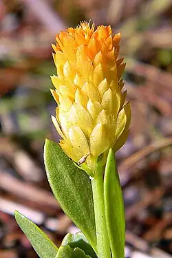 | Of the Polygalaceae (milkwort family), only the genus Polygala, with about a dozen taxa, and Polygaloides, with a single species, are found outside of cultivation in New York. All of these taxa are native to the region, but many are rare or presumed extirpated.[F 1]