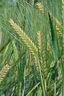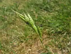 Rye (Secale cereale) is commonly planted as a grain, forage, or cover crop, but is not listed as naturalizing in New York State.[1] Feral rye is known to contaminate wheat crops and become established in open rangeland, waste places, and roadsides if it escapes cultivation elsewhere in North America.[2]