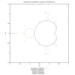 - ↑ math.stackexchange qestion: is-there-a-more-efficient-equation-for-the-mandelbrot-lemniscates