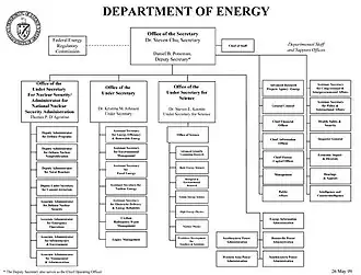 The Department is under the control and supervision of a United States Secretary of Energy, a political appointee of the President of the United States. The Energy Secretary is assisted in managing the Department by a United States Deputy Secretary of Energy, also appointed by the President, who assumes the duties of the Secretary in his absence. The Department also has three Under Secretaries of Energy, each appointed by the President, who oversee the major areas of the Department's work. To aid the Under Secretaries in the performance of there duties, President appoints eight Assistant Secretaries of Energy and the Energy Secretary assigns their functions and duties.